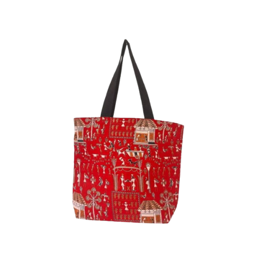 Jute Cotton Printed Ladies Bag(RED) quantity