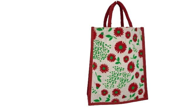 & Free ShippingJute Printed Shopping Bag (Small) | Red