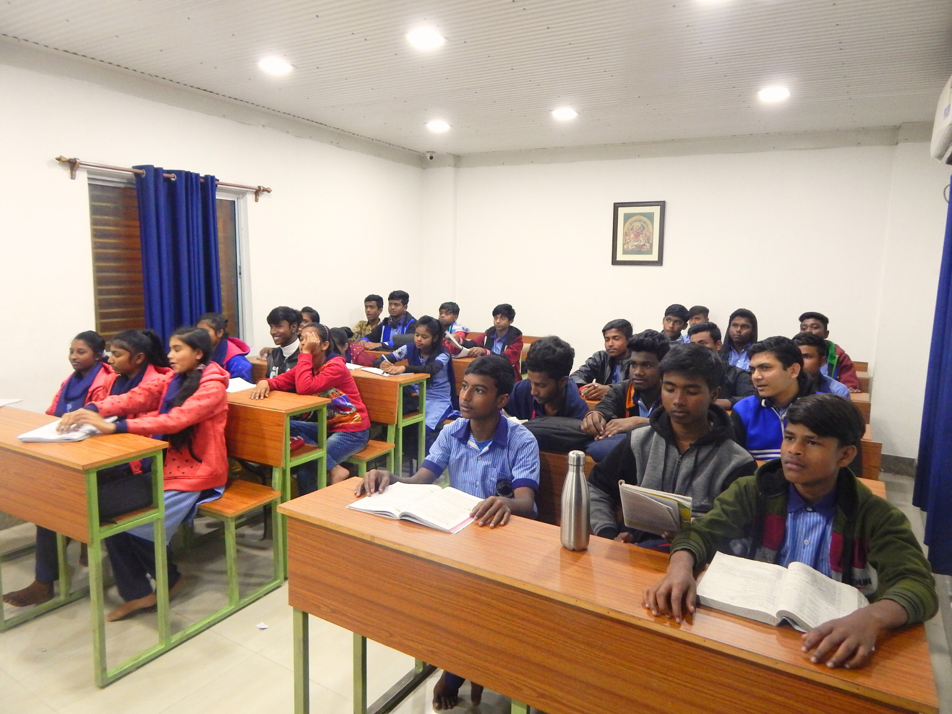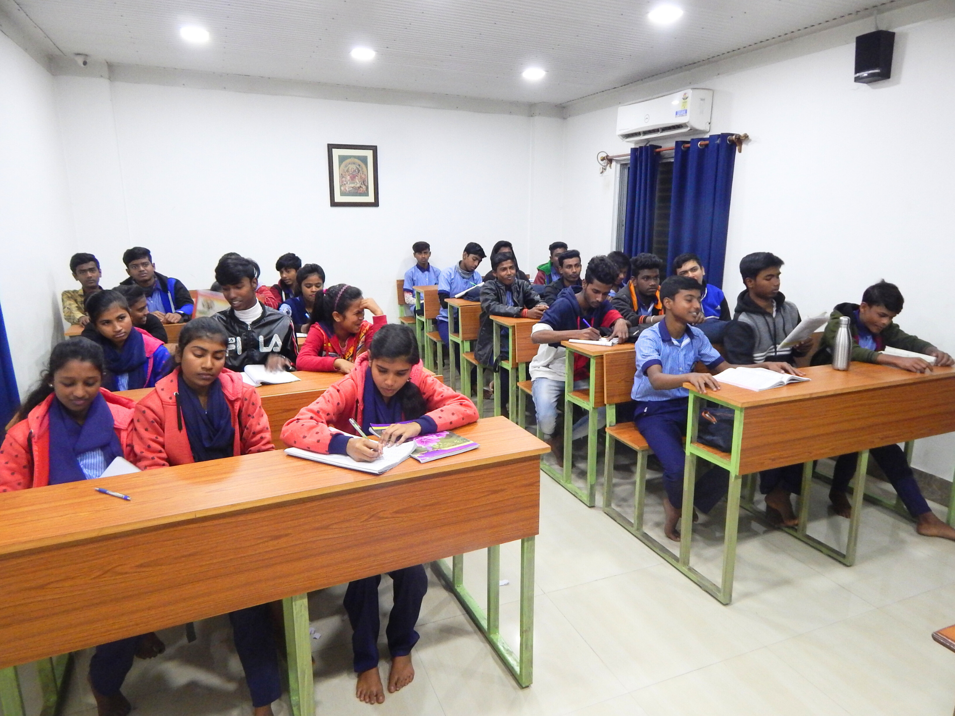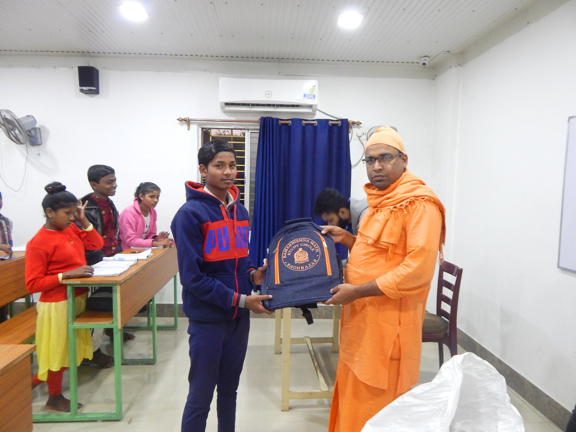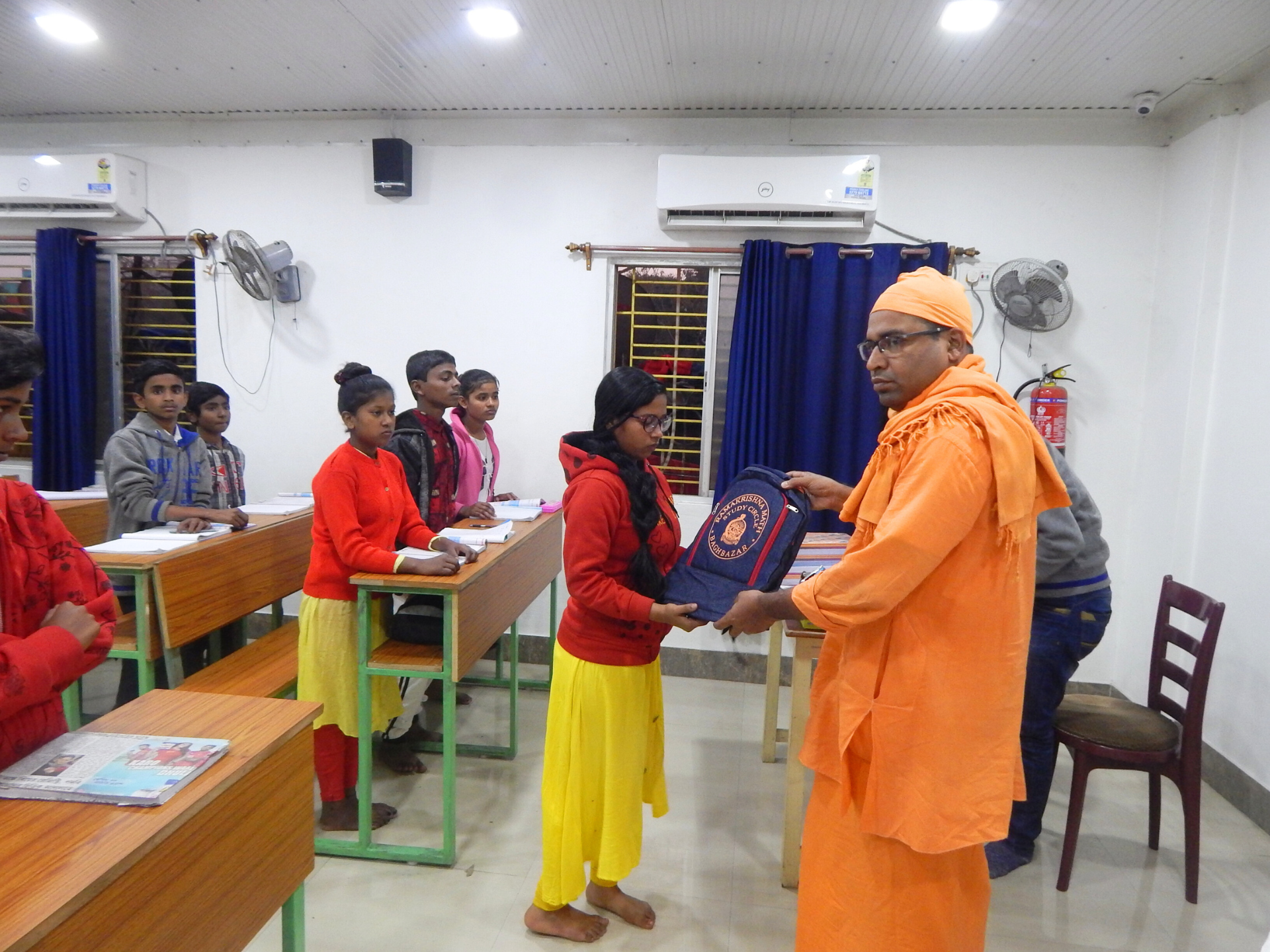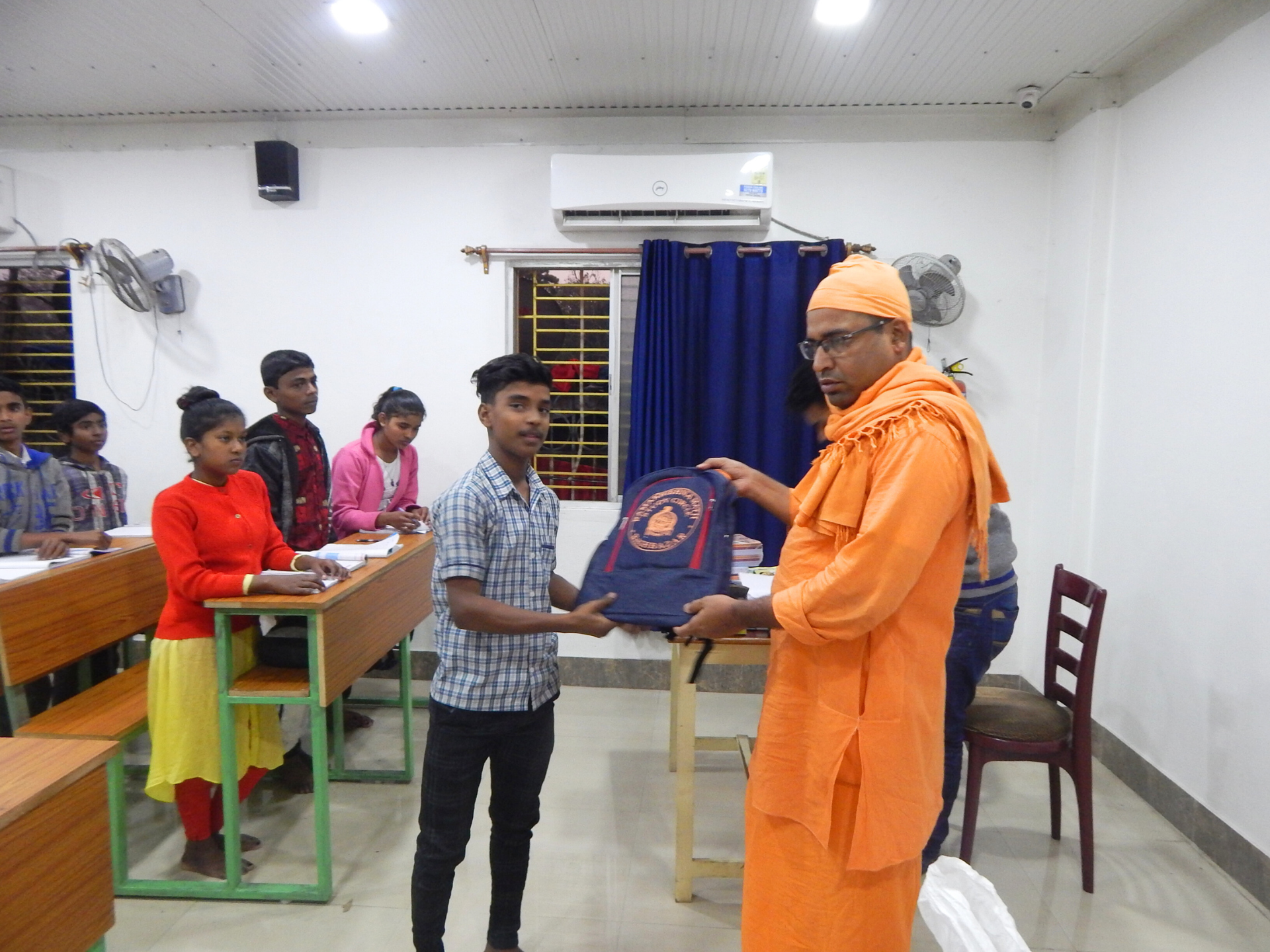 Under the aegis of the Mass Education Department, Govt. of West Bengal, we have started Vivekananda Study Circle, a forum of youth aged between 14 and 30 years. There are two types primarily, one being regular classes of school-going boys and girls of Class VIII and IX and the other being a Value education program encompassing Indian culture, ethics and morality, and idealism of Sri Sri Thakur, Sri Ma Sarada Devi and Swami Vivekananda. While the regular classes for school-going boys take place between 4.00 to 7.00 the value education classes are held on every Saturday from 11 am to 12 noon. Students are supplied with Textbooks, Exercise Books, Pencils, Dresses, and Shoes. Tiffin’s are provided free of cost. Free Medical check-ups and treatments are also available. There are about 90 students attending in the 1st category while 100 odd youth attend value education classes regularly.